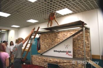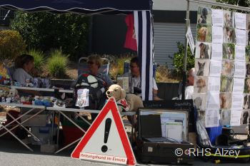 Einen ganzen Tag lang konnten sich die Besucher des Rheinhessen-Centers Alzey rund um die Rettungshundearbeit informieren. Hinter den Kassen des Reals tummelten sich die Rettungshundeteams um ihr Können zu zeigen und einen kleinen Einblick in die Rettungshundearbeit geben zu können. Das Einkaufszentrum war vor allem zur Mittagszeit sehr gut besucht, so dass erfreulicher Weise, wie erhofft, viele Leute stehen blieben als das Kommando "Vorran” durch die Menge tönte. Viele Hunde zeigten was sie in Punkto Gerätearbeit auf dem Kasten haben. Mit freudigem Schwanzwedeln überwanden sie das 2m hohe Gerüst, um sich dann ihre wohl verdiente Belohnung von ihrem Herrchen oder Frauchen abzuholen. Viele Besucher zückten vor Begeisterung sogar ihr Handy um Fotos zu schießen. Es wurden viele Fragen des Publikums persönlich beantwortet und sogar Erste Hilfe am Hund, wie z.B. ein Pfotenverband gezeigt. Natürlich kamen die Hunde nicht zu kurz und erhielten von den Besuchern viele Streicheleinheiten. Wir freuen uns so viel Aufmerksamkeit der Besucher, zahlreiche Spenden und vor allem Interesse an Patenschaften erhalten zu haben und bedanken uns recht herzlich bei allen.