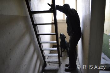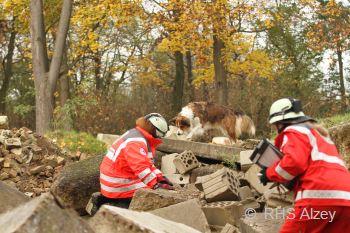 Zur Zeit haben wir glücklicherweise viele Gelegenheiten auf unterschiedlichen Geländen im Bereich Trümmer zu trainieren. Auch mitten in Alzey war es uns nun möglich, ein Abbruchhaus der Stadt Alzey für die Ausbildung zu nutzen. Dort, wo bald der neue Anbau der Kreisverwaltung stehen wird, konnten unsere Hundeteams ausgiebig in dunklen Kellern, verlassenen Häuserelementen und halbverfallenen Räumen einen interessanten und lehrreichen Trainingstag gestalten. Natürlich geht auch hier ein Dankeschön an die Stadt Alzey, die uns das Training in dem Abrisshaus ermöglichte.