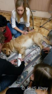 Teilnehmer Pfotenverband & Co direkt ”am lebenden Objekt” üben. Ebenso wurde