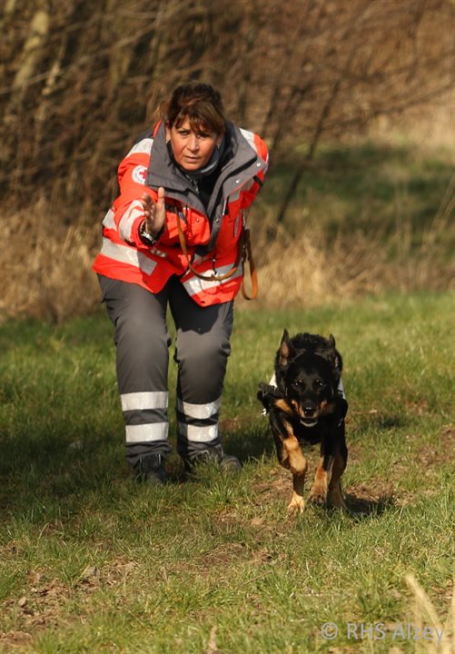 Das Suchen selbst liegt jedem Hund im Blut. In der Ausbildung zum Rettungshund lernt er jedoch, seine Nase zielgerichtet einzusetzen und nach menschlicher Witterung zu stöbern. Hierzu nutzen wir den Wind, der die Witterung weiterträgt, entsprechend, um die Nasenarbeit anzubahnen. Je nach Hunderasse kann es unterschiedlich lange dauern, bis der Hund verstanden hat, dass er mit dem zielgerichteten Einsatz seiner Nase schneller zum Erfolg kommt.