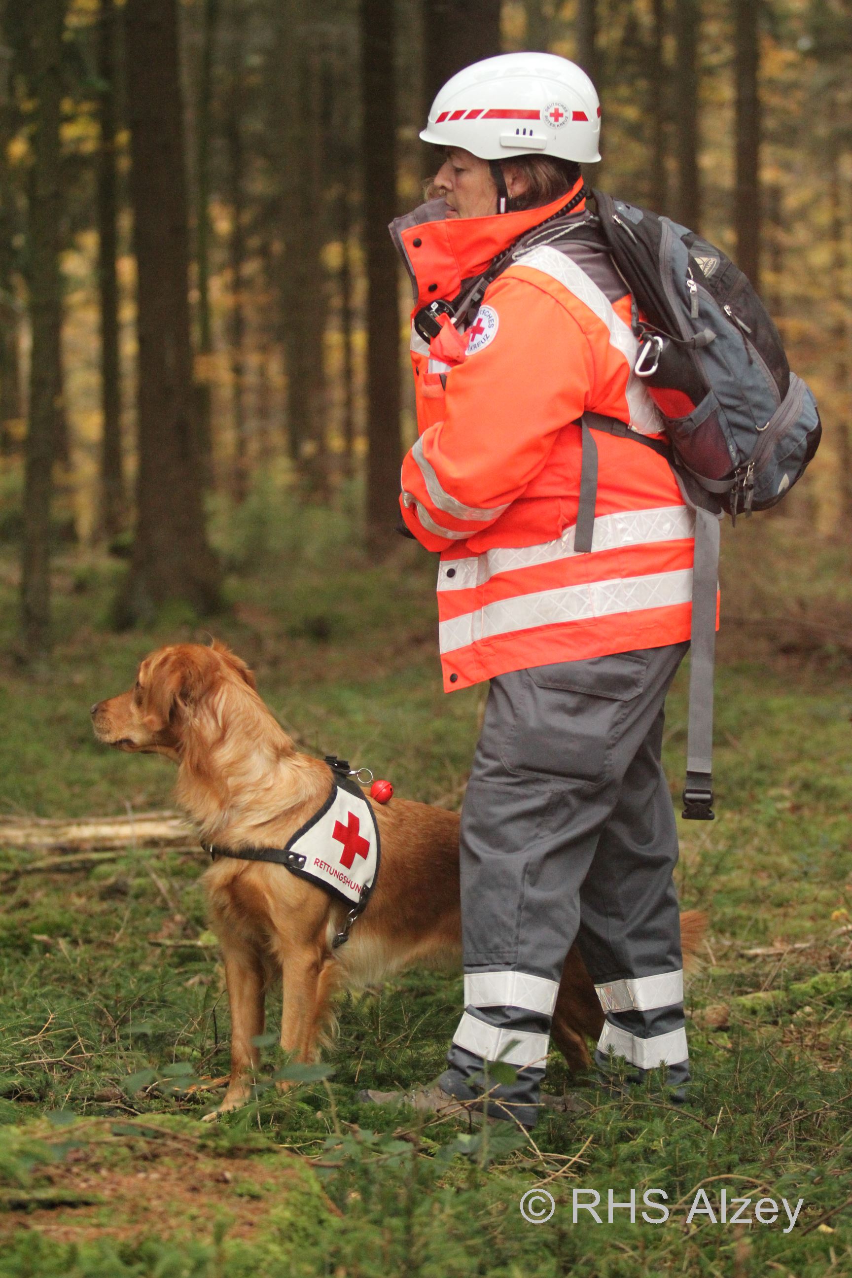 Rotkreuz-Kenndecke, unter der Leitung des Hundeführers, einzeln oder
