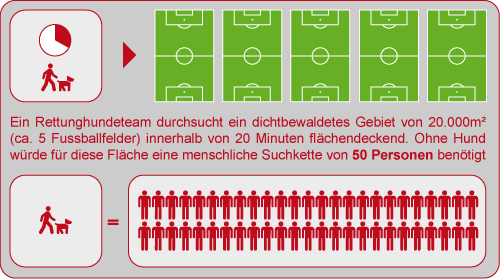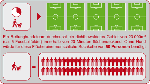 Wie erheblich dabei die Geschwindigkeits- und Aufwandsunterschiede zu technischen Geräten oder Suchmannschaften ohne Hunde sind, zeigt folgendes Beispiel:
